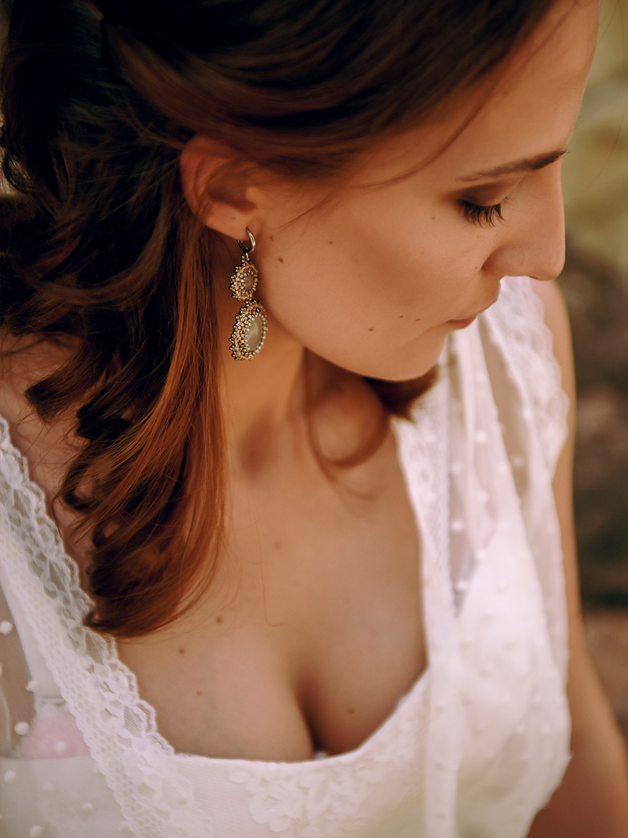 Сложные многослойные образы с использованием легких, натуральных тканей и кожи. Для невесты подходит любое без корсета и кринолина. Образ может быть дополнен вязаными элементами, украшениями ручной работы, джинсовкой с яркой ручной вышивкой. В стиле бохо легкая растрепанность волос и естественный макияж только приветствуются. Пример традиционного образа невесты бохо: светлый хлопчатобумажный сарафан с оборками и вышивкой, полуботинки на небольшом каблуке или ковбойские сапоги, жилет и легкая куртка из песочной замши, широкополая шляпа и, конечно, массивные этнические украшения (колье, браслеты, серьги). Для жениха – свободные мягкие брюки, рубашка с закатанными рукавами, подтяжки, шляпа.